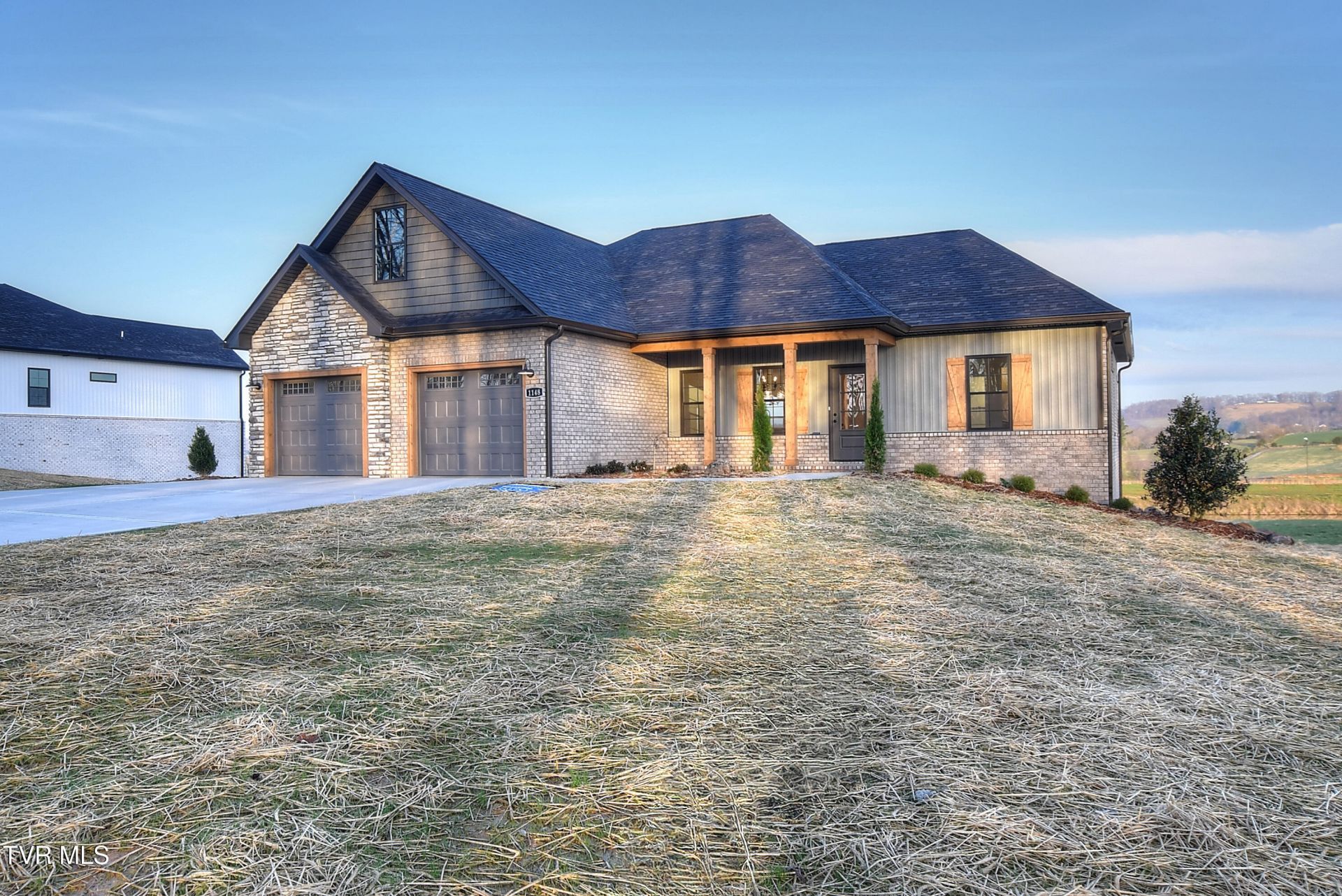 Welcome to refined new construction in The Glades at Hawley Meadows, where luxury, space, and thoughtful design come together on a picturesque 1.7-acre homesite. This exceptional residence offers 3 bedrooms, 3 full baths, TWO private office/flex spaces, and TWO expansive living areas, creating a perfect balance of elegance and functionality.The open-concept main level is anchored by a dramatic floor-to-ceiling custom stone natural gas fireplace and flows seamlessly to the covered back deck?ideal for both entertaining and quiet evenings overlooking the countryside. The gourmet kitchen is a true showpiece, featuring abundant shaker-style cabinetry with soft-close doors and drawers, quartz countertops, designer tile backsplash, stainless steel appliances with gas range, walk-in pantry, and an oversized island overlooking the main living space.The primary suite is a luxurious retreat, showcasing dual vanities with quartz countertops, a custom 5' tiled shower, accent wall, and a spacious walk-in closet with custom shelving. Two additional main-level bedrooms are privately positioned on the opposite wing of the home and share a beautifully appointed full bath.The partially finished walk-out lower level offers exceptional versatility and is ideal for guests or multi-generational living, featuring a fourth bedroom, additional office, full bath, and inviting den area, plus over 1,000 square feet of unfinished space for storage or future expansion.Premium upgrades include hardwood and tile flooring throughout (no carpet), natural gas service for HVAC, tankless water heater, range, and fireplace, and quality craftsmanship at every turn. Enjoy serene views from the covered back deck and the privacy of a large lot in this exclusive new community conveniently located in Blountville. A rare opportunity to own a luxury new construction home combining modern elegance with peaceful countryside living.All information herein deemed reliable but subject to buyers verification.Estimated completion- March 2026.