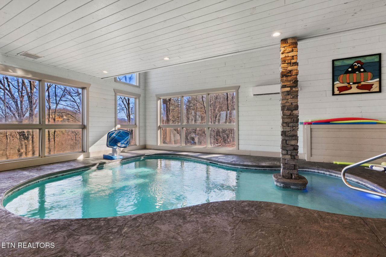 **WOW FACTOR INVESTMENT OPPORTUNITY!** Grossed $156k for 2024! Five star reviews and seller will help new owner transition 2026 bookings to continue maximizing revenue! ****STR Investor Opportunity: Property may qualify for accelerated depreciation through a cost segregation study, potentially allowing eligible owners to front-load depreciation benefits. Buyer to consult tax advisor****Welcome to 2430 Rainbow Falls Lane, a striking 3-bedroom, 3-bath luxury indoor pool lodge with stunning mountain views that perfectly blends luxury modern rustic style with high-performing short-term rental income. This property is not just a cabin-it's a turnkey income-producing experience designed to attract today's most sought-after vacation guests.From the moment you step inside, you're greeted by soaring ceilings, warm wood tones, and an open-concept layout that feels both upscale and inviting. The heart of the home features a stunning living area anchored by a dramatic stacked-stone fireplace, flowing seamlessly into a designer kitchen with abundant cabinetry, expansive counters, and a large island ideal for entertaining groups. The modern rustic aesthetic continues throughout with clean lines, tasteful finishes, and thoughtful design details that elevate the entire space.What truly sets this cabin apart is its resort-style amenities. Guests are drawn year-round to the indoor in-ground plunge swimming pool, a rare and highly desirable feature that drives consistent bookings regardless of season. Step outside to unwind in the private hot tub, creating the perfect apr?s-adventure retreat. Inside, a dedicated theater room offers a cinematic experience, while additional entertainment areas ensure guests of all ages are fully engaged-maximizing stay length and repeat visits, and afully equipped arcade style gameroom with pool table, shuffle board, and a multi arcade game for an out of this world gaming experience.The well-appointed bedroom layout provides privacy and comfort, with each bedroom paired to a full bath, making it ideal for families, couples, or group getaways. Featuring two King Master Suites on the main level and a huge built in bunk room with 4 queen size custom built bunks beds with steps in the middle. Setup to sleep 12 guests with every inch designed with both guest experience and rental performance in mind, resulting in strong reviews, high occupancy, and impressive revenue potential.Step outside to enjoy the expansive outdoor are equipped with a firepit with seating, expansive Parking around the circular driveway, and a useable yard area to walk around and enjoy the serene wooded moutain setting.Whether you're looking to expand your investment portfolio or secure a luxury mountain retreat that works for you when you're not using it, **2430 Rainbow Falls Lane** delivers on every level-style, amenities, and income. This is a rare opportunity to own a **top-tier Smoky Mountain STR** with proven performance and standout features that continue to outperform the market. Schedule your private showing today and see why this cabin is a true standout in both luxury and investment potential. Convenient location only a short drive to Pigeon Forge, Gatlinburg, attractions, shopping, and dining! Only 5 miles to the parkway and 8 miles to Dollywood! Paved roads and easy access no steep roads! CHECK OUT THE 3D WALK THROUGH AND VIDEO!